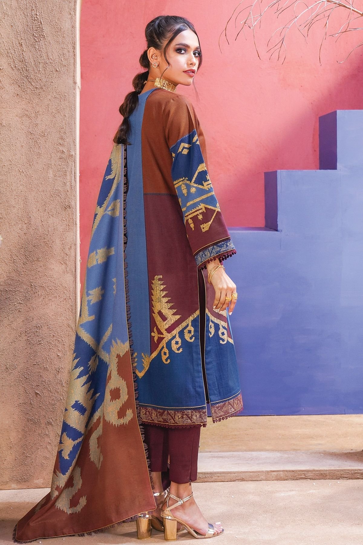 • Printed Khaddar Suit with Shawl