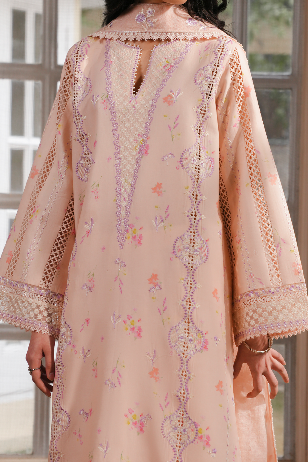 PRINTED LAWN PEACH DIGITAL PRINTED EMBROIDERED SLEEVES 2 PCS