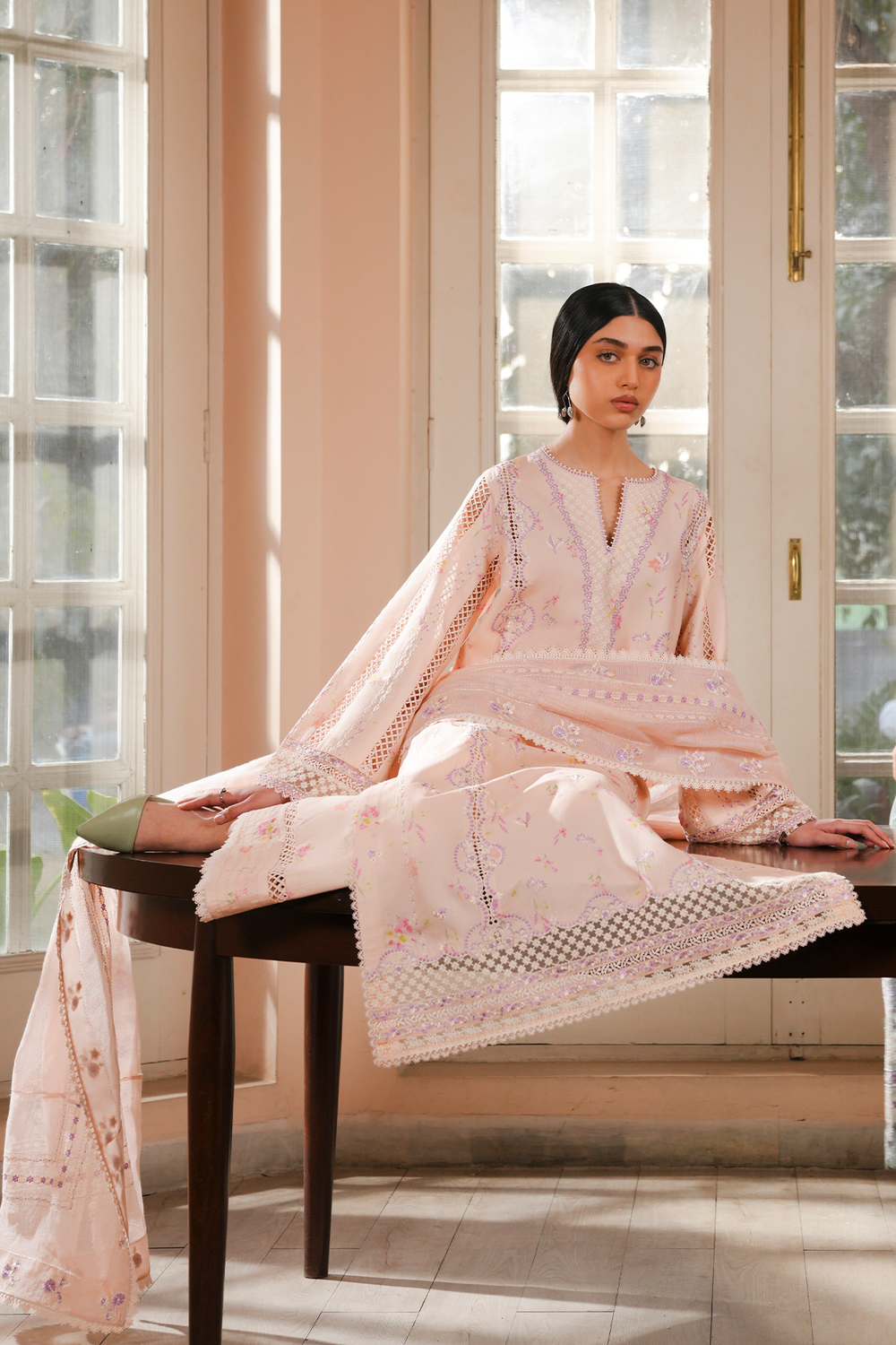 KHAADI NET PEACH EMBROIDERED DUPATTA PALLU BORDER 2 PCS
