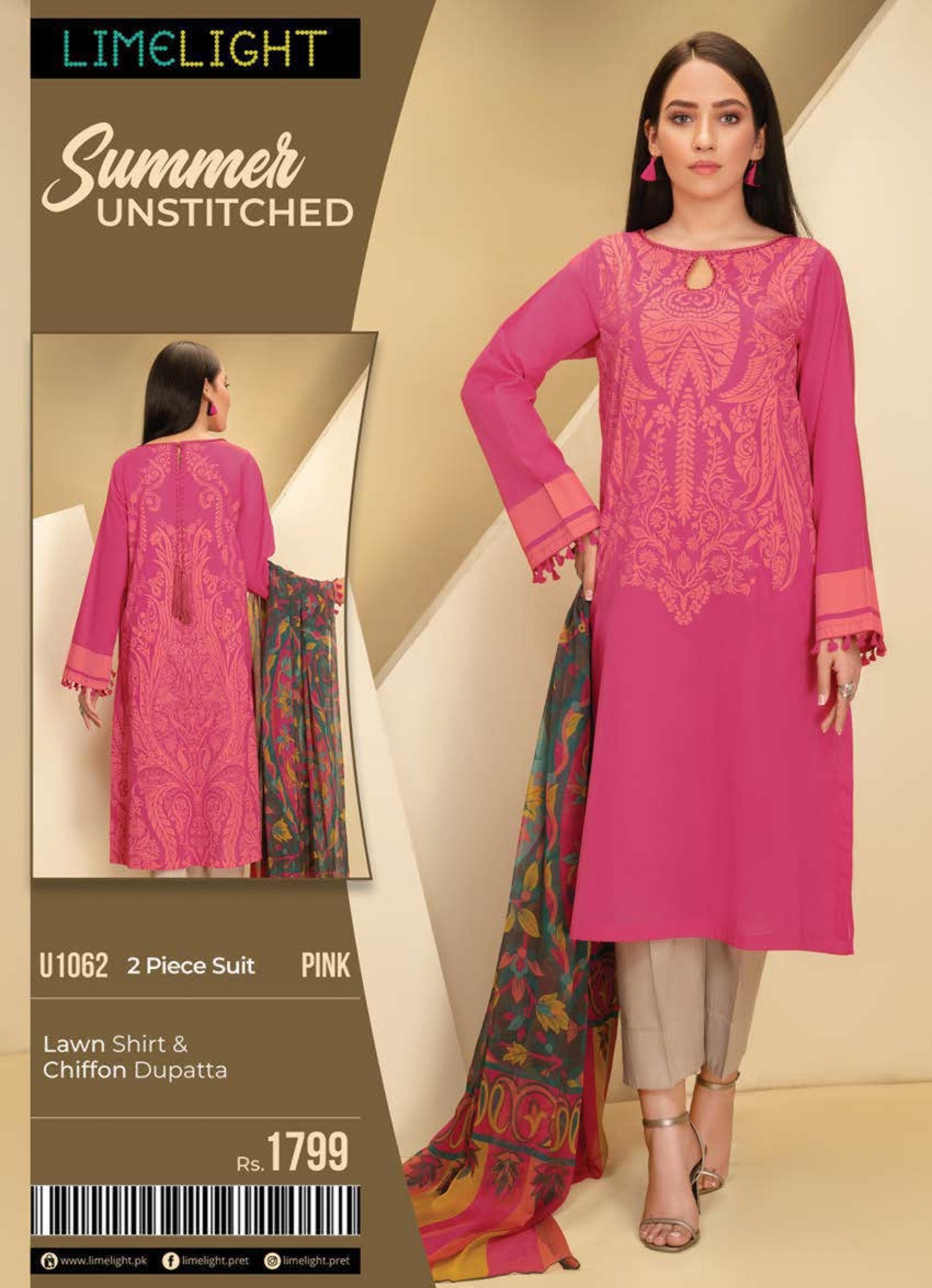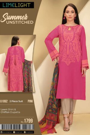 LIMELIGHT U1062 – PINK – 2PC (SHIRT/CHIFFON DUPATTA)