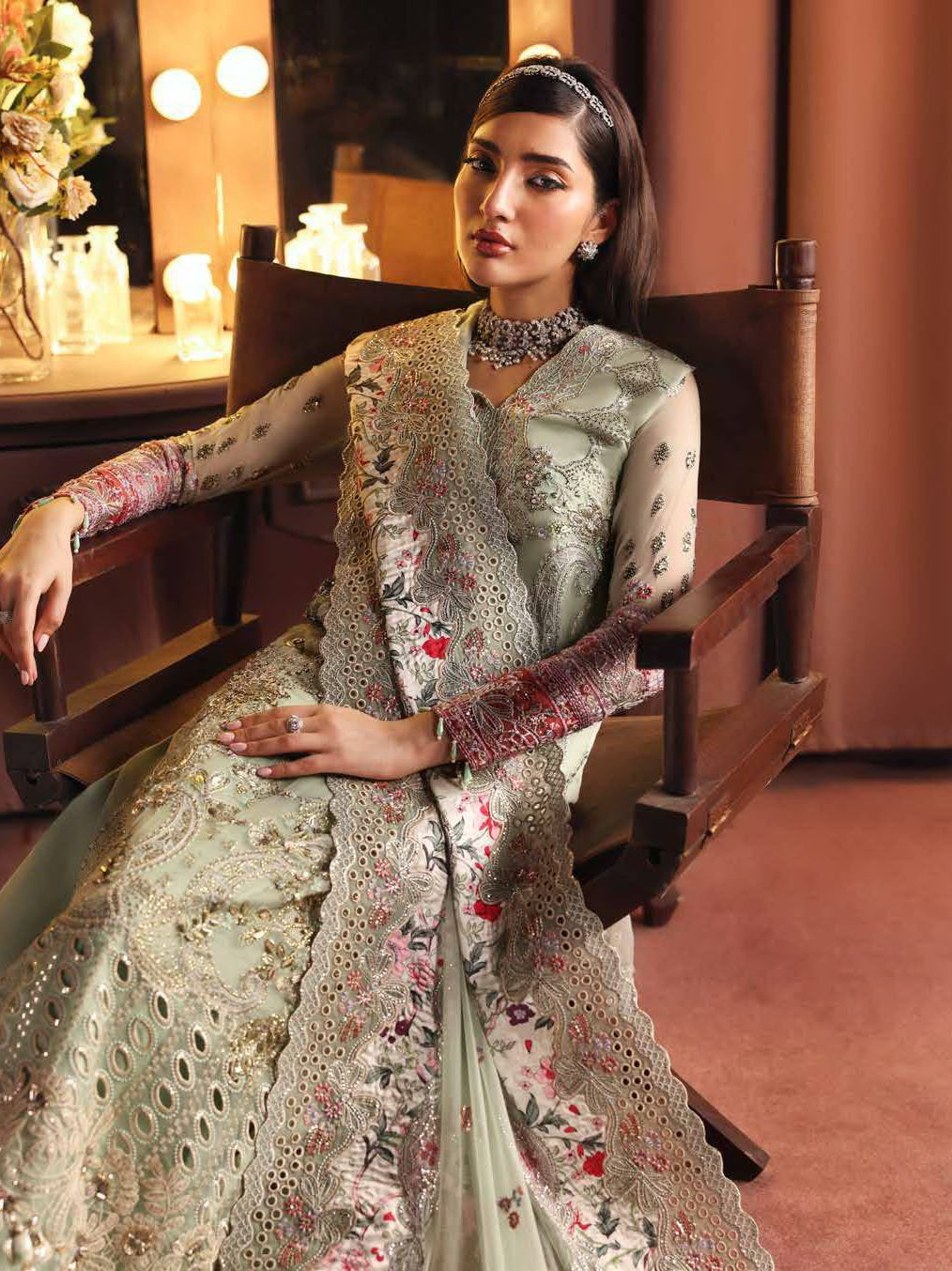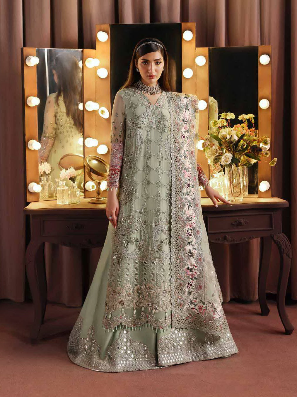 - Embroidered & Hand Embellished Chiffon Front