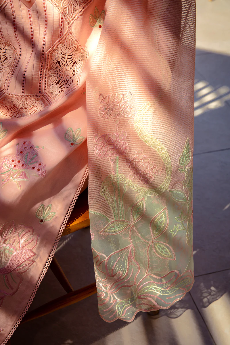 Dyed Organza Embroidered Dupatta Pallu 02 Pieces
