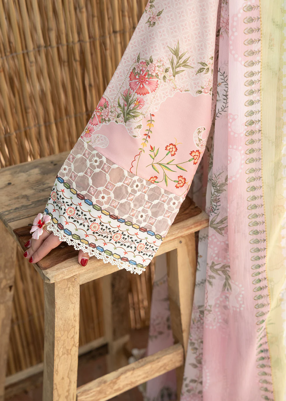 • Printed chiffon dupatta measuring 2.5 meters