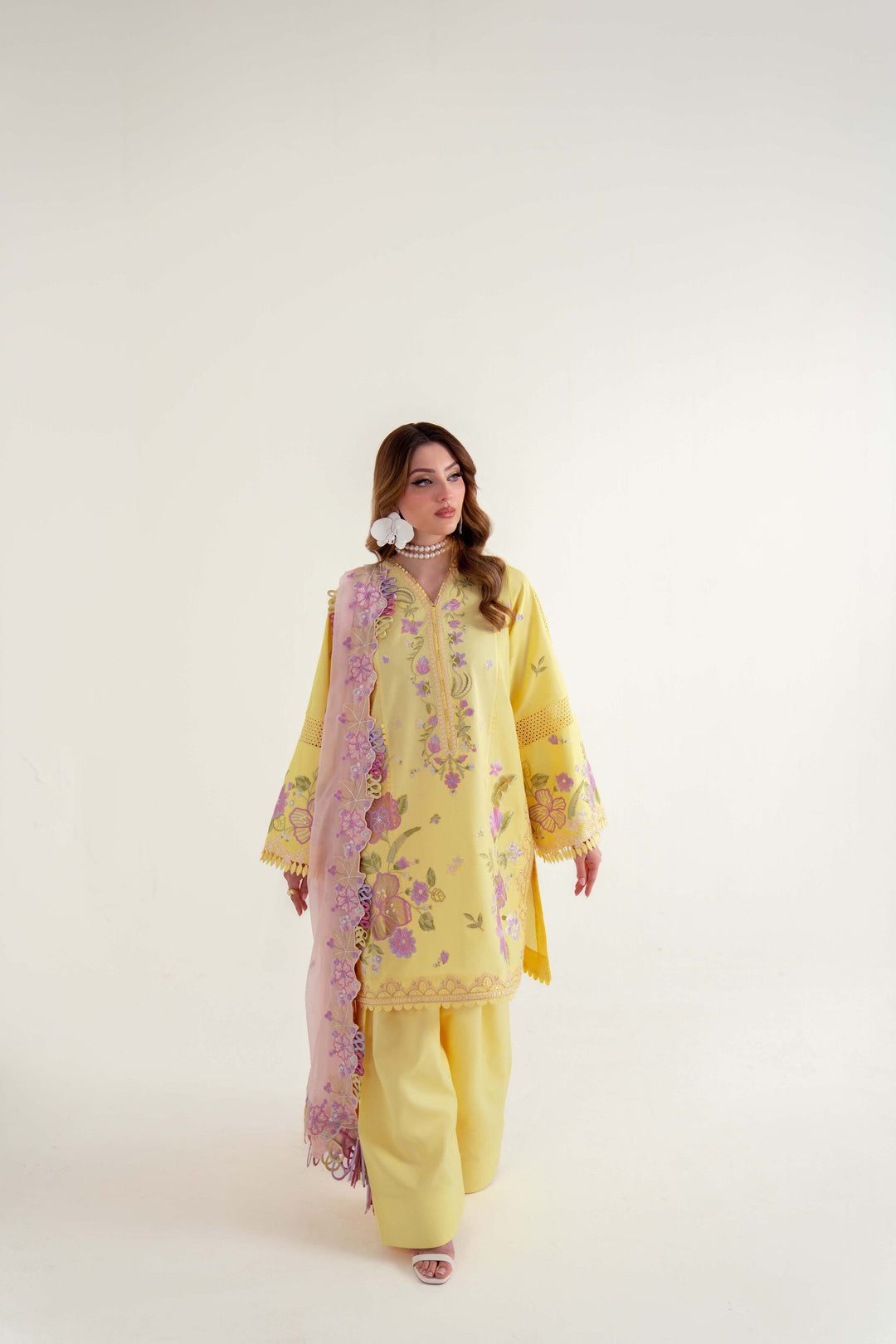 - EMBROIDERED FRONT SIDE PATTI ON YELLOW ORGANZA FABRIC 3M” 01