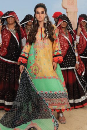 ADAN’S LIBAS DIGITAL SCHIFFLI EMBROIDERED KHUMAAR / SAFFRON LUXURY LAWN COLLECTION